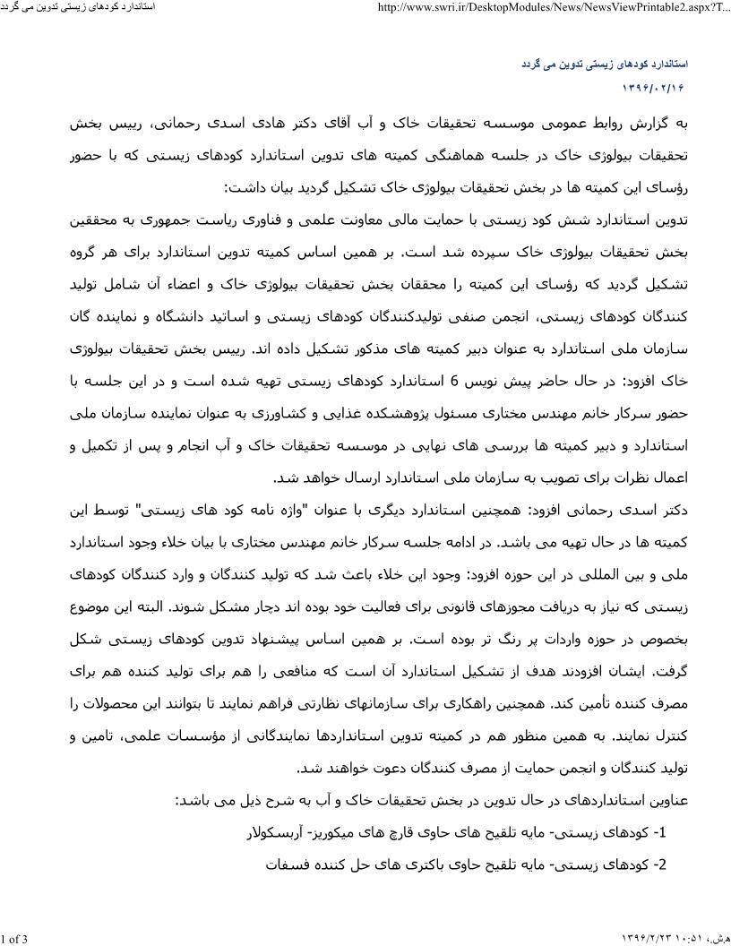فناوری ریاست جمهوری به محققین بخش تحقیقات بیولوزی خاک سپرده شده است متن گزارش فوق الذکر بشرح ذیل میباشد: