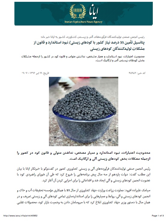 94/3/30توسعه کاربردکودهای آلی و زیستی در کشاورزی کشور
