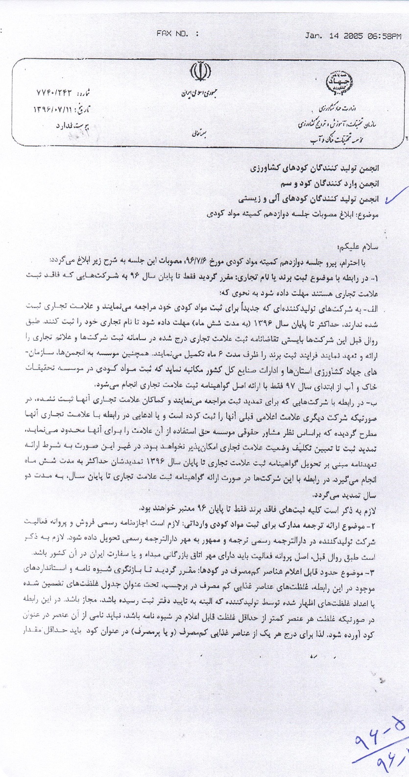 94/8/6اطلاعیه فوری شرکت خدمات حمایتی کشاورزی