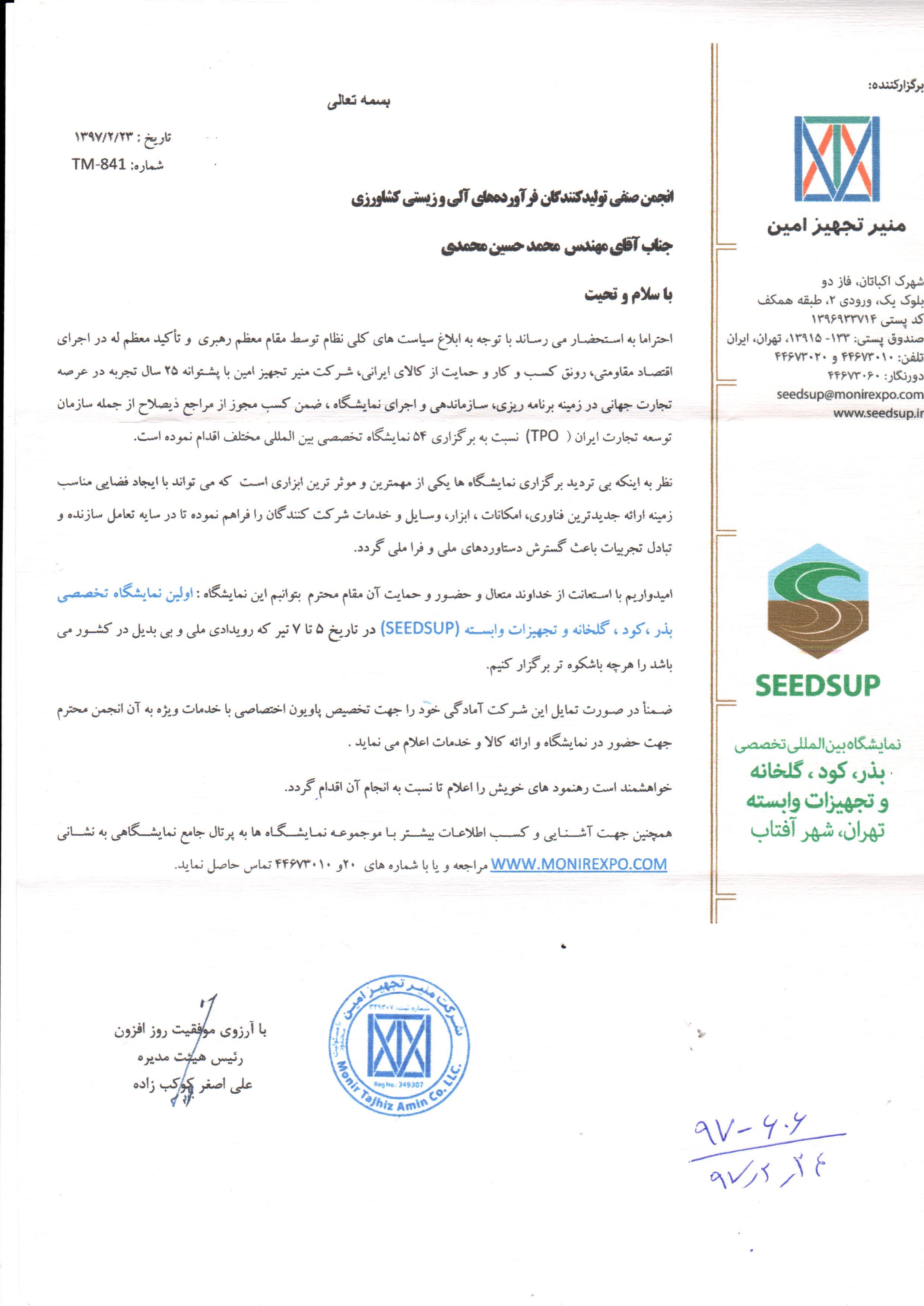 1402/10/1اطلاعیه دهمین نمایشگاه نهاده های کشاورزی تهران