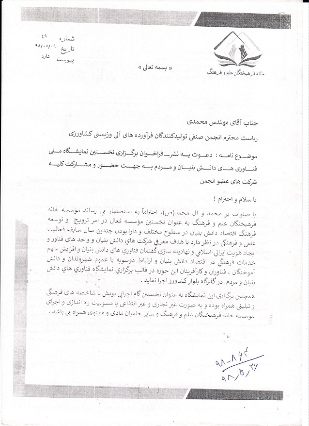 بحضور در این نمایشگاه خواهشمندیم با شماره تلفن همراه 09102184328اقای مهندس نیکو ارتباط برقرار فرمایند.