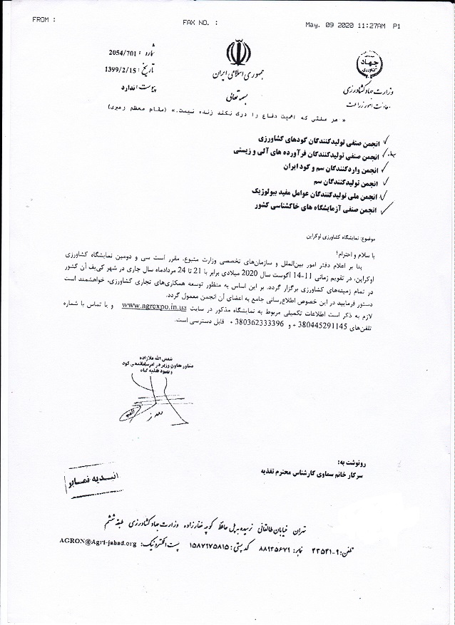 1402/10/1اطلاعیه دهمین نمایشگاه نهاده های کشاورزی تهران