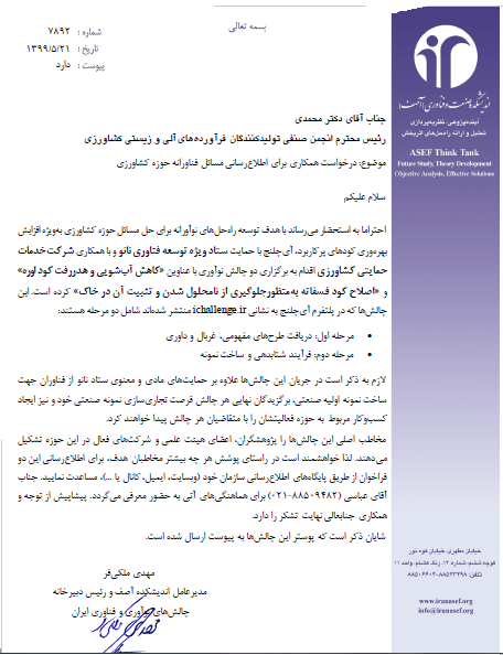 99/5/22 اطلاعیه اندیشکده صنعت وفناوری حوزه کشاورزی