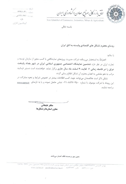 دفتر انجمن و یا شماره تلفن 88370450اتاق بازرگانی تماس حاصل فرمایند