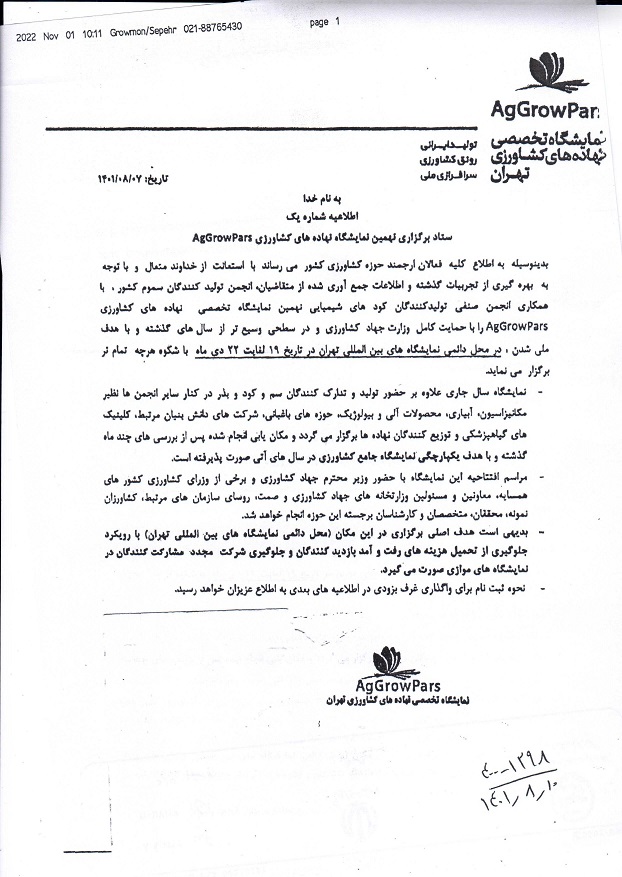 ازکلیه شرکتهای علاقمند دعوت بحضور مینماید جهت کسب اطلاعات بیشتر با دبیرانجمن خانم دوست محمدیانی تماس حاصل فرمایند