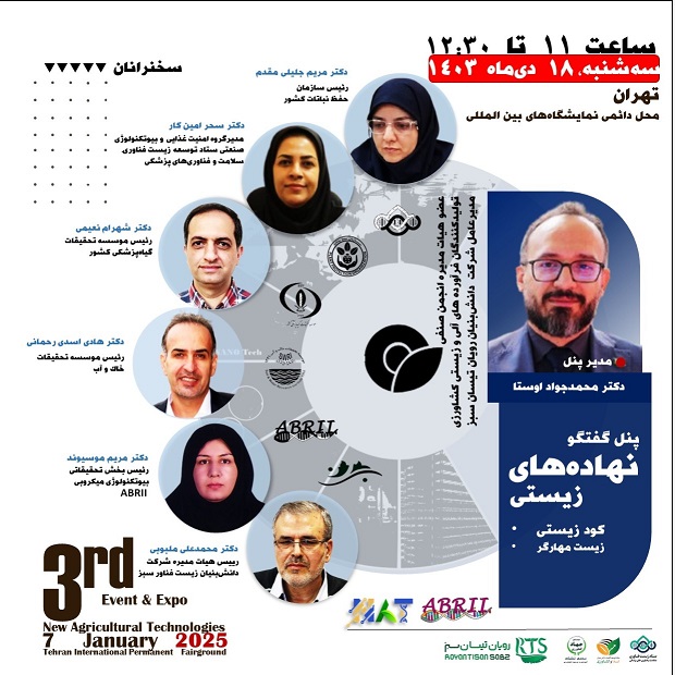 معرفی نهاده ها و تعداد اعضای انجمن صنفی و فعالیت شرکت های دانش بنیان و ارتباط انجمن با بخش های دولتی و انجام طرحهای مختلف صحبت نمودند .همچنین آقای دکتر قانعی از ستاد توسعه زیست فناوری و آقای دکتر مردی رئیس پژوهشگاه بیوتکنولوژی و اقای دکتر ملبوبی از پزوهشگاه کشاورزی وآقای مهندس صفرپور از سازمان حفظ نباتات و آقای دکتر رجالی از موسسه تحقیقات خاک و آب سخنانی در خصوص روند اجرای پروژه ها و اقدامات برای نهاده های زیستی ایراد نمودند در قسمت بعدی پنل گفتگوی نهاده های زیستی با پرسش و پاسخ از مسئولان سازمان گیاهپزشکی و موسسه تحقیقات خاک و آب و........ توسط آقای دکتر اوستا رئیس شرکت رویان تیسان سبزو مدیرپنل انجام گردید